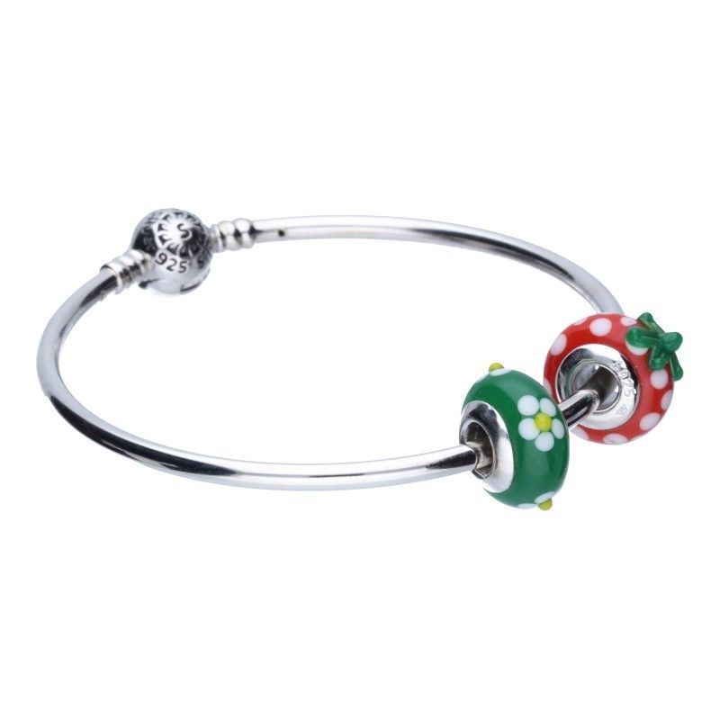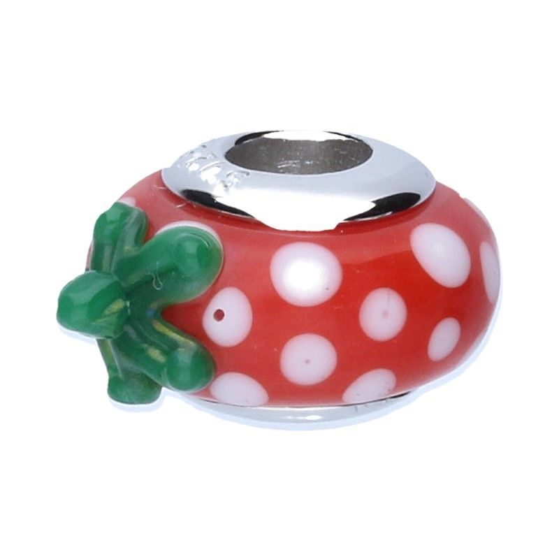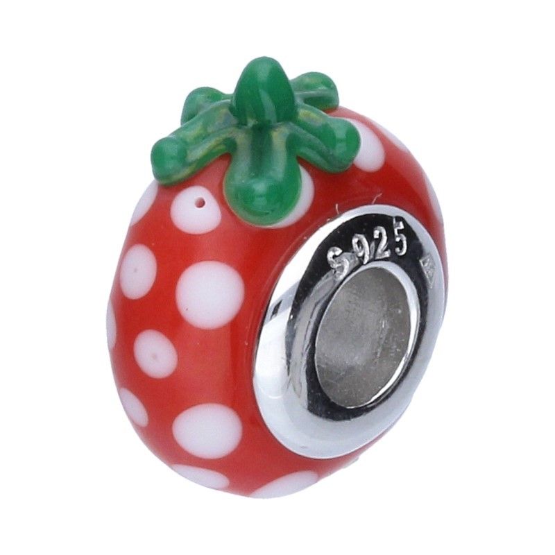 PERLEN-ARMBANDANHÄNGER, DURCHMESSER 3 MM, 925 SILBER RHODINIERT, WEISSE, GRÜNE UND ROTE PERLEN, ERDBEERE.