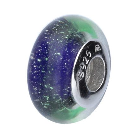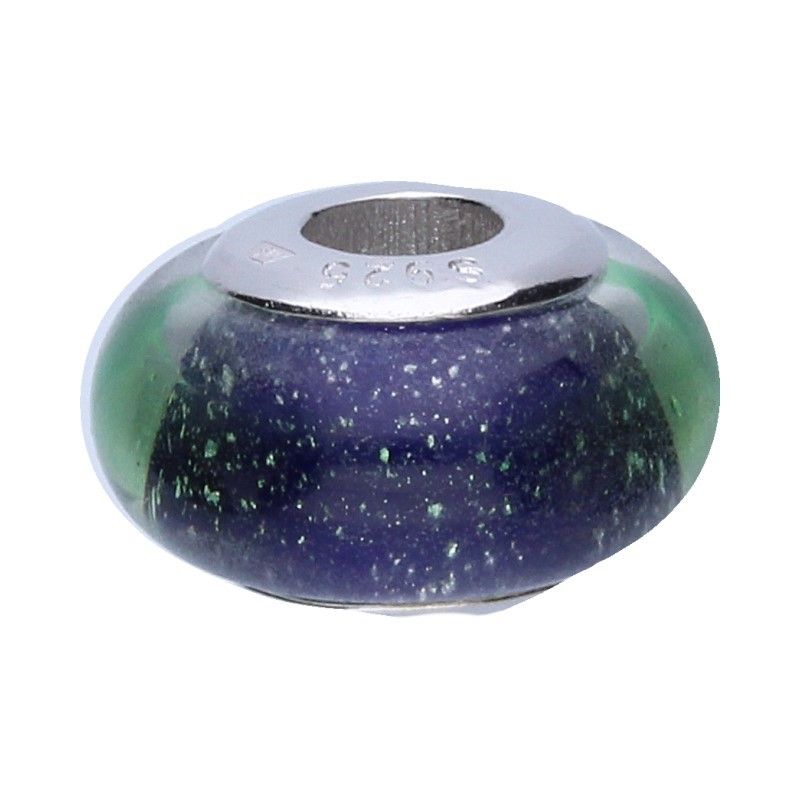 PERLEN-ARMBANDANHÄNGER, DURCHMESSER 3 MM, 925 SILBER RHODIUMBESCHICHTET, GLATTGRÜN UND SAPHIRPERLE MIT GLÄNZENDEN PARTIKELN.