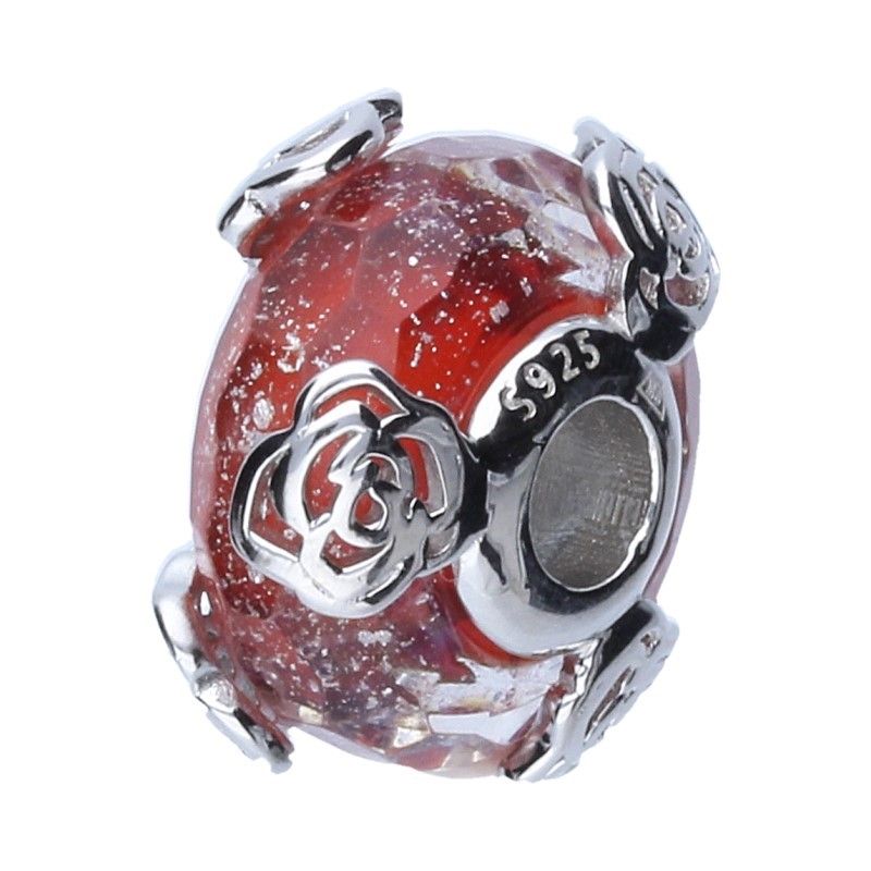 PERLEN-ARMBAND-ANHÄNGER, DURCHMESSER 3 MM, 925 SILBER RHODINIERT, FACETTIERTE ROTE PERLE MIT VERSANDTEILEN, DURCHGEBRACHTE ROSEN.
