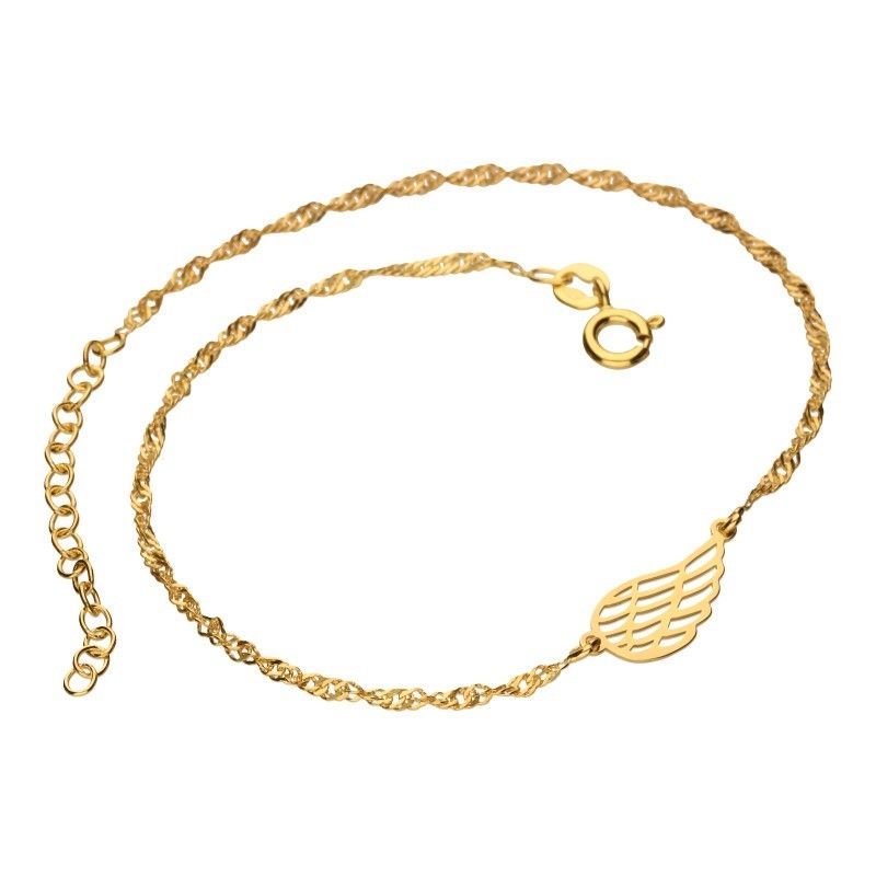 BEINARMBAND, 925er SILBER, 24 KARAT VERGOLDET, LÄNGE 23 CM + 4 CM VERLÄNGERUNG, SINGAPUR, DURCHGEBRACHTER FLÜGEL.