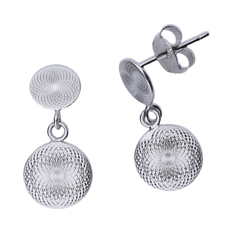 Filigrane Hängeohrringe, 925er Silber, rhodiniert, Hängering mit 3D-Effekt, Durchmesser des Hängeelements: 8 mm