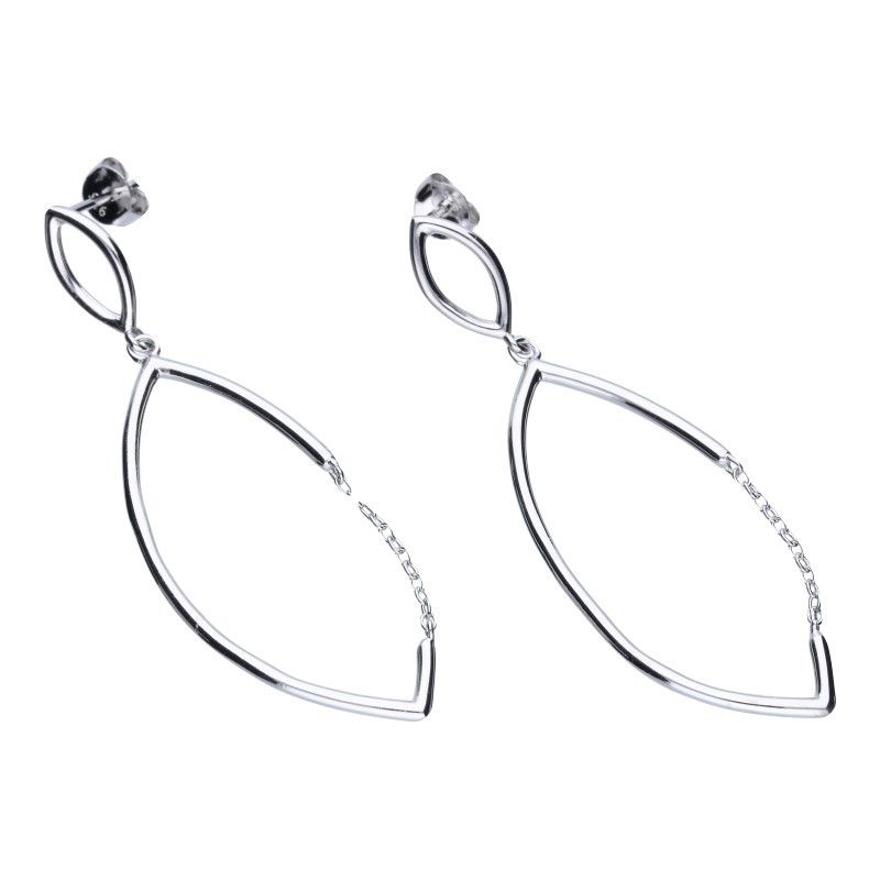 ELEGANTE PIN-OHRRINGE, SPINDELFORM, HÄNGEND, MIT KETTE, 925 SILBER RHODINIERT, LÄNGE: 55 MM, BREITE: 18 MM. WIR LIEFERN DAS SET MIT EINEM ANHÄNGER MIT DEM SYMBOL: E-0891P