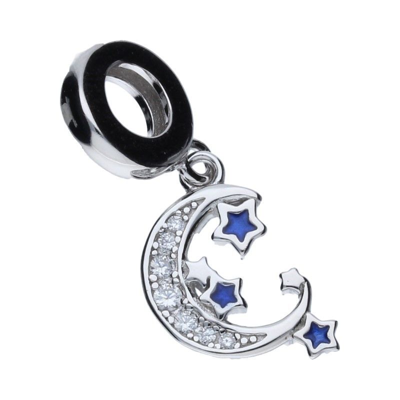PERLEN-ARMBANDANHÄNGER, DURCHMESSER 3 MM, 925 SILBER RHODIUMBESCHICHTET, WEISSER ZIRKONIA, SAPHIR-EMAIL, MOND, STERNE.