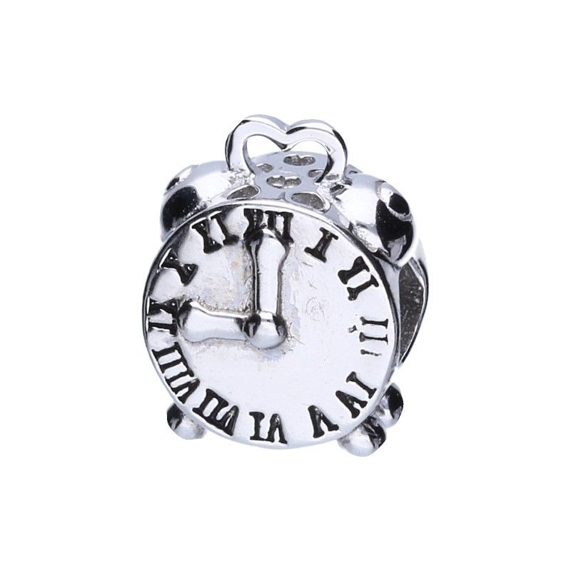 DURCHGEBUNDENER ANHÄNGER FÜR EIN PERLENARMBAND, DURCHMESSER 3 MM, 925 SILBER, RHODINIERT, UHR, WECKER.