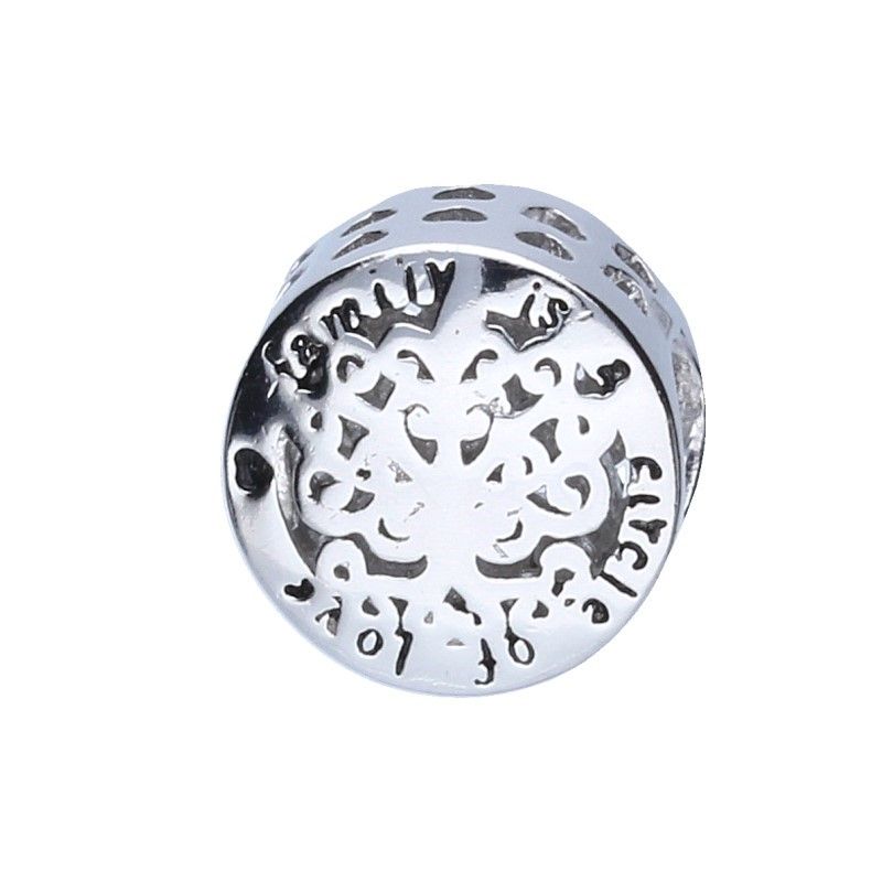 Durchbrochener Anhänger für ein Perlenarmband, Durchmesser 3 mm, 925er Silber, rhodiniert, Familie ist ein Kreis der Liebe.