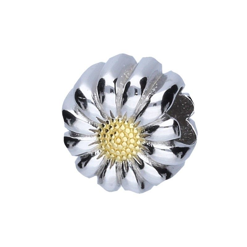 PERLENANHÄNGER FÜR EIN ARMBAND MIT EINEM DURCHMESSER VON 3 MM, EINE KOMBINATION AUS 925ER SILBER, RHODINIERT MIT 24 KARAT VERGOLDET, BLUME.