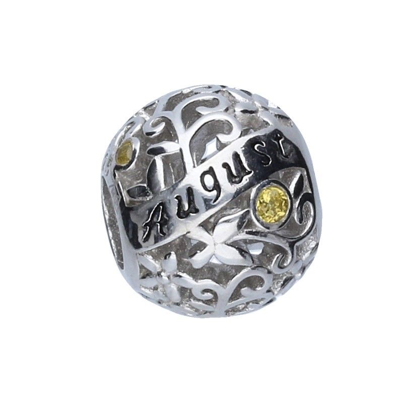 PERLENANHÄNGER MIT DEM NAMEN DES MONATS AN EINEM ARMBAND MIT EINEM DURCHMESSER VON 3 MM, 925 SILBER, RHODINIERT, GELBER ZIRKONIA, AUGUST, AUGUST.
