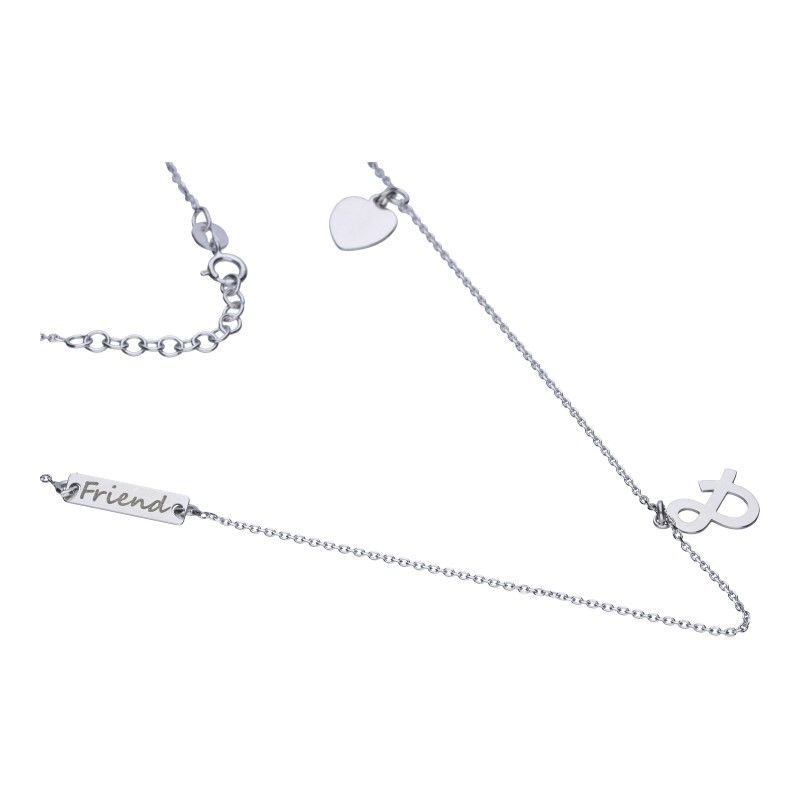 925-SILBER-HALSKETTE, RHODINIERT, LÄNGE 42 CM + 3 CM VERLÄNGERUNG, GLATTES HERZ & EIN TELLER MIT DEM SCHREIBFREUND.