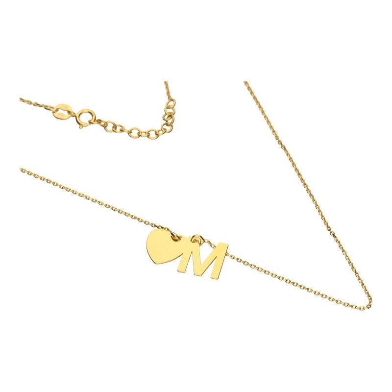 925 SILBER HALSKETTE, VERGOLDET MIT 24 KARAT GOLD, LÄNGE 42 CM + 3 CM VERLÄNGERUNG, GLATTES HERZ UND DER BUCHSTABE M.