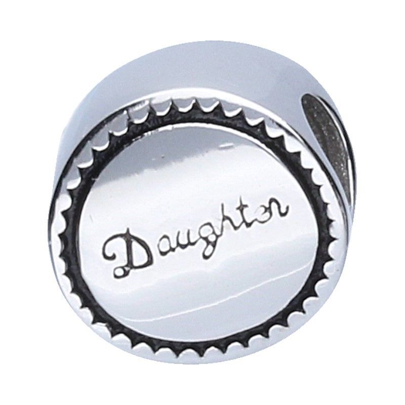 MODULARER PERLEN-ARMBANDANHÄNGER, DURCHMESSER 3 MM, 925 SILBER, RHODINIERT, PERLE MIT TOCHTER-INSCHRIFT.