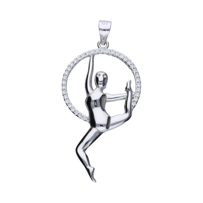 ANHÄNGER AUS 925ER SILBER, RHODINIERT, DURCHMESSER 2 CM, WEISSES ZIRKONIA, GYMNASTIK, SPORT, TRAINING, TANZ.
