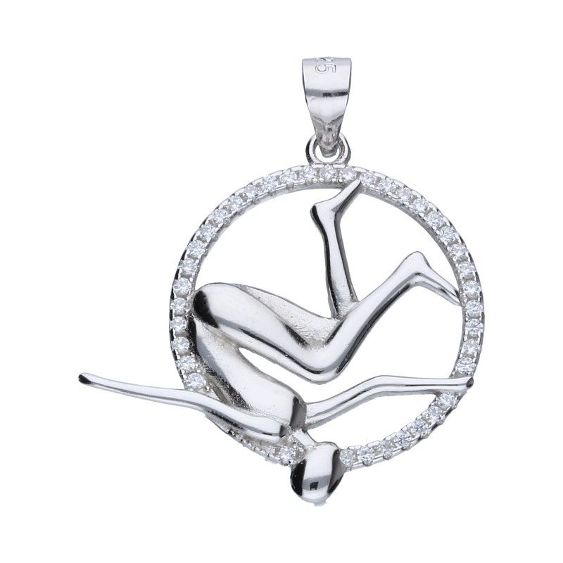 ANHÄNGER AUS 925ER SILBER, RHODINIERT, DURCHMESSER 2 CM, WEISSES ZIRKONIA, GYMNASTIK, SPORT, TRAINING, TANZ.