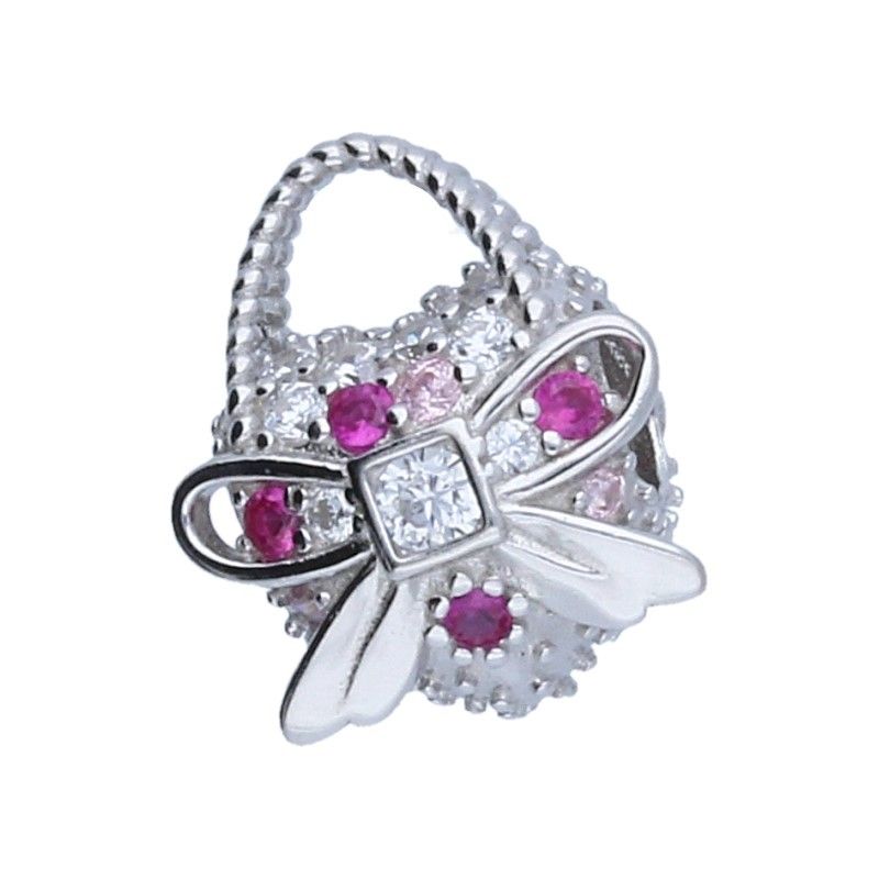 PERLENANHÄNGER PASST ZU MODULARARMBÄNDERN MIT EINEM DURCHMESSER VON 3 MM, 925 SILBER, RHODINIERT, BUNTES ZIRKONIA, TASCHE, SCHLEIFE.