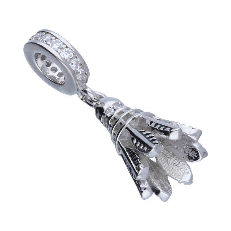 PERLENANHÄNGER PASST ZU MODULARARMBÄNDERN MIT EINEM DURCHMESSER VON 3 MM, 925 SILBER, RHODIUMBESCHICHTET, WEISSER ZIRKONIA, PFEIL.