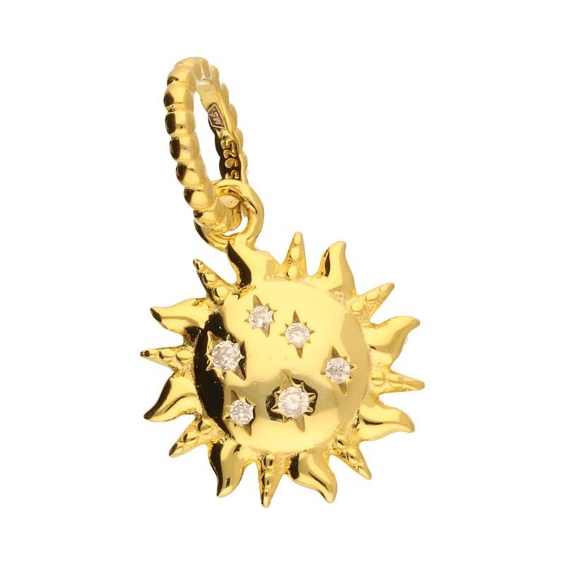 PERLENANHÄNGER PASST ZU MODULARARMBÄNDERN MIT EINEM DURCHMESSER VON 3 MM, 925 SILBER VERGOLDET MIT 24 KARAT GOLD, WEISSEM ZIRKONIA, SONNE.