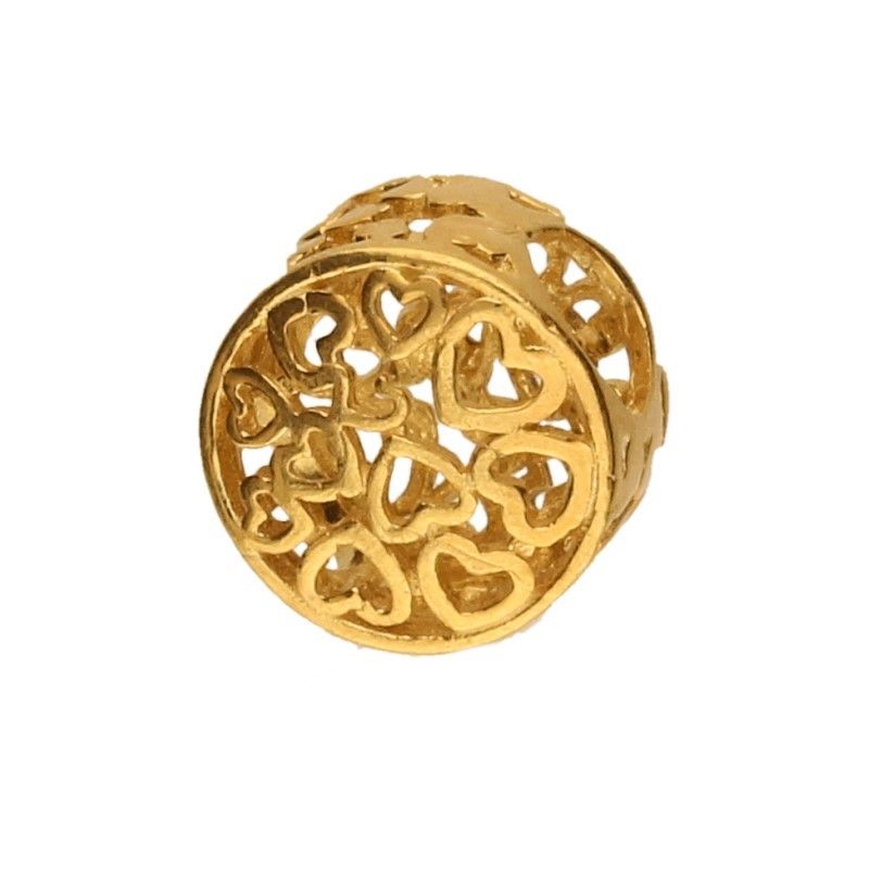 PERLEN-ANHÄNGER PASST ZU EINEM MODULAR-ARMBAND MIT EINEM DURCHMESSER VON 3 MM, 925 SILBER, VERGOLDET MIT 24 KARAT GOLD, PERLE MIT DURCHGEBRACHTEN HERZEN.