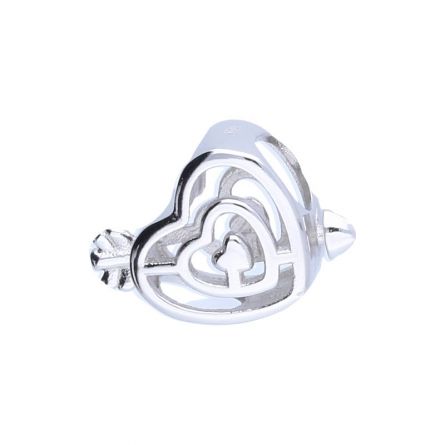Durchbrochener Perlenanhänger, geeignet für modulare Armbänder mit einem Durchmesser von 3 mm, 925er Silber, Herz vollendet durch einen Pfeil, Labyrinth.