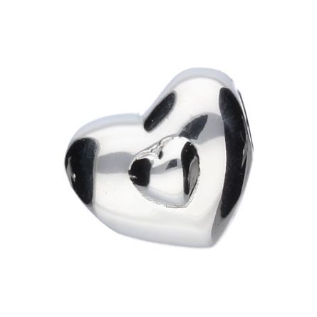 ANHÄNGER PASST ZU MODULARBEAD-ARMBÄNDERN MIT EINEM DURCHMESSER VON 3 MM, 925 SILBER, RHODINIERT, EMPESSIERTES HERZ.