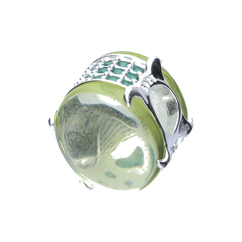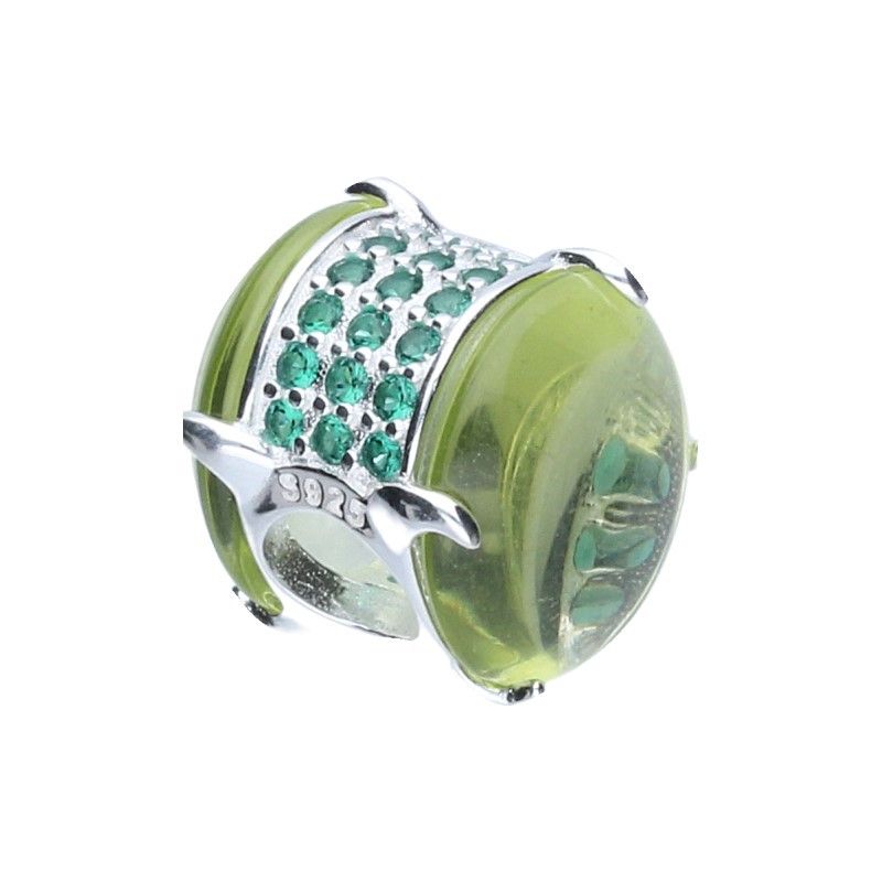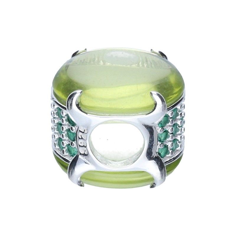 PERLENANHÄNGER PASST ZU MODULARARMBÄNDERN MIT EINEM DURCHMESSER VON 3 MM, 925er SILBER, LIMEFARBIGE PERLE UND GRÜNER ZIRKONIA.