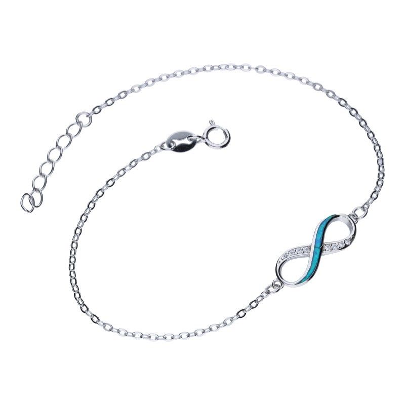 ARMBAND AUS 925-SILBER, RHODIUMBESCHICHTET, BLAUER OPAL UND WEISSER ZIRKONIA, UNENDLICH, ABMESSUNGEN 17 mm x 7 mm.