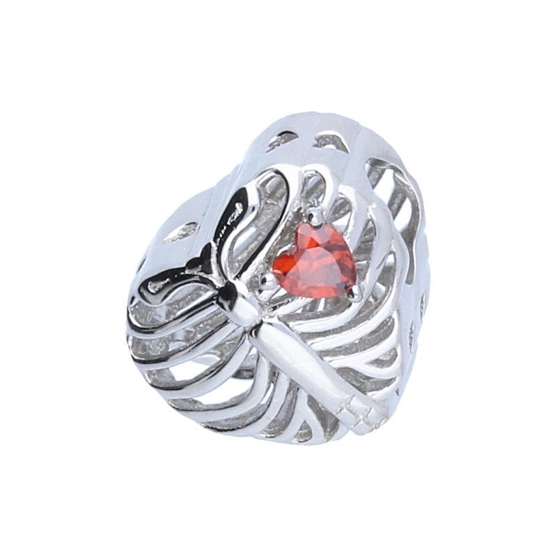 PERLENANHÄNGER PASST ZU MODULARARMBÄNDERN MIT EINEM DURCHMESSER VON 3 MM, 925 SILBER, RHODIUMBESCHICHTET, ROTER ZIRKONIA, HERZ, DURCHGEBRACHT, SKELETT.