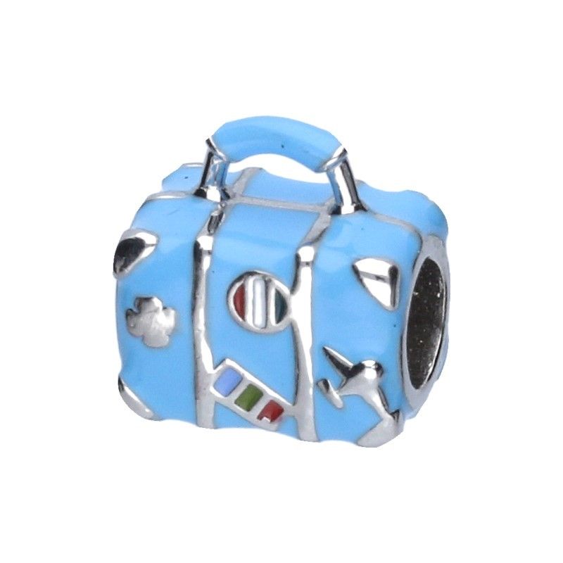 PERLENANHÄNGER PASST ZU MODULARARMBÄNDERN MIT EINEM DURCHMESSER VON 3 MM, 925 SILBER, RHODINIERT, BUNTE EMAILLE, KOFFER, REISE, URLAUB.