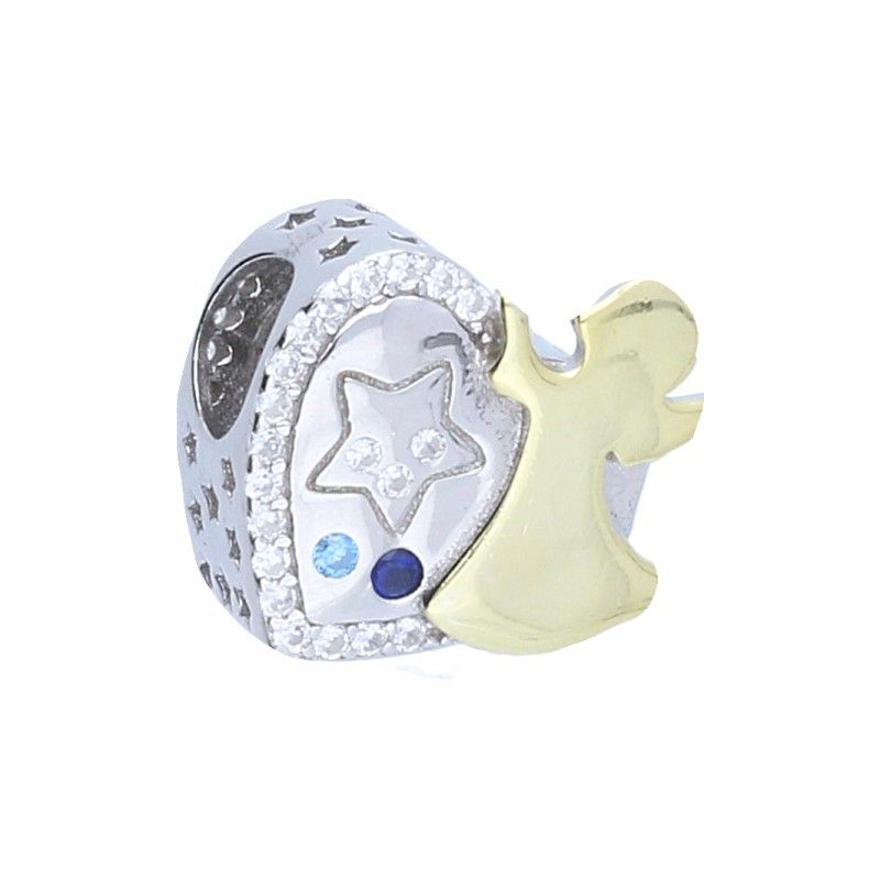 PERLENANHÄNGER PASST ZU MODULARARMBÄNDERN MIT EINEM DURCHMESSER VON 3 MM, EINE KOMBINATION AUS 925ER SILBER, RHODINIERT MIT 24 KARAT VERGOLDET, BUNTEM ZIRKONIA, OFFENEM HERZ, ENGEL, STERN.