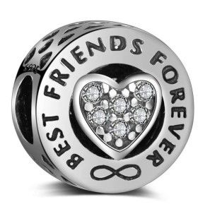 PERLENANHÄNGER PASST ZU MODULARARMBÄNDERN MIT EINEM DURCHMESSER VON 3 MM, 925 SILBER, RHODINIERT, WEISSER ZIRKONIA, HERZ, UNENDLICHKEIT, BESTE FREUNDE FÜR IMMER.