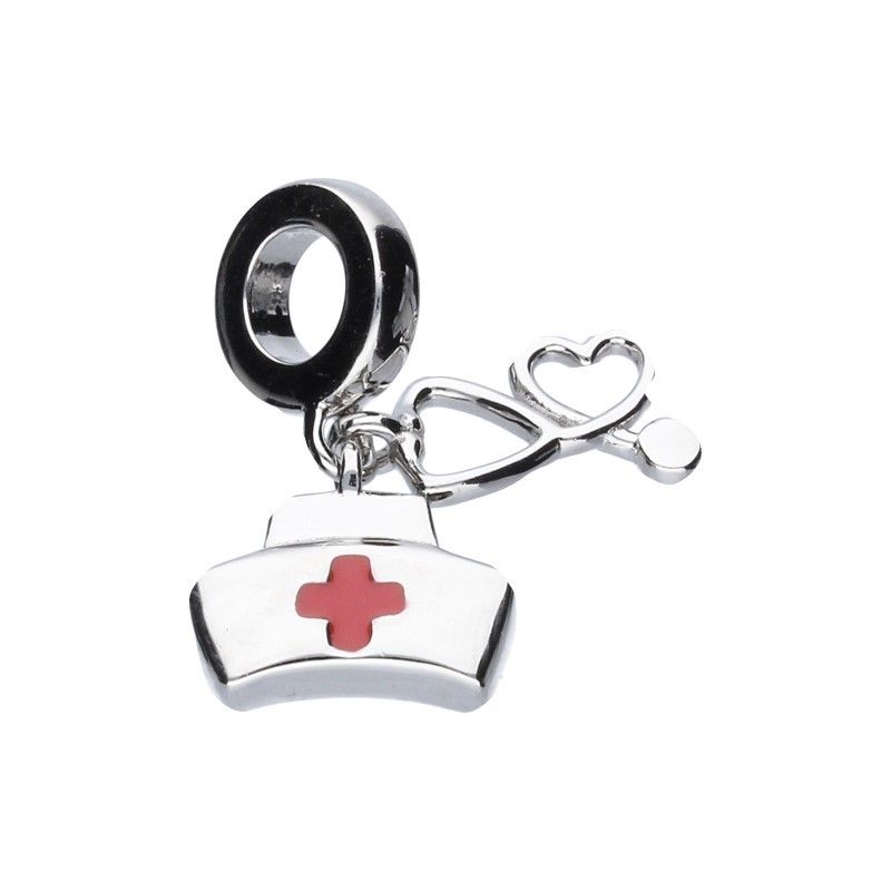 PERLENANHÄNGER PASST ZU MODULARARMBÄNDERN MIT EINEM DURCHMESSER VON 3 MM, 925 SILBER, RHODINIERT, ROTE EMAILLE, ARZTASCHE PLUS STETHOSKOP.