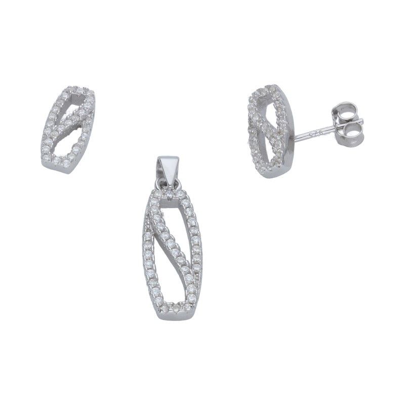 SET AUS OHRSTECKER UND ANHÄNGER, 925 SILBER, RHODINIERT, WEISSER ZIRKONIA, DURCHGEBRACHT, OVAL, ZIRKONIA