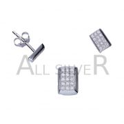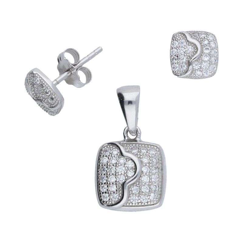 SET ANHÄNGER-PLUS-Ohrstecker, 925er Silber rhodiniert, weißer Zirkon, Mikrofassung, quadratisch, ANHÄNGERABMESSUNGEN OHNE BAND 11 mm x 11 mm.