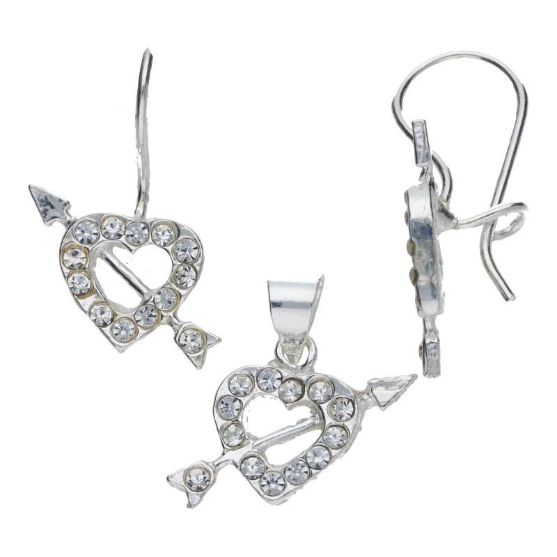 SET, ANHÄNGER UND OHRRINGE, 925 SILBER, SEMILICE IN WEISSER FARBE, VON EINEM PFEIL DURCHBOHRTES HERZ.