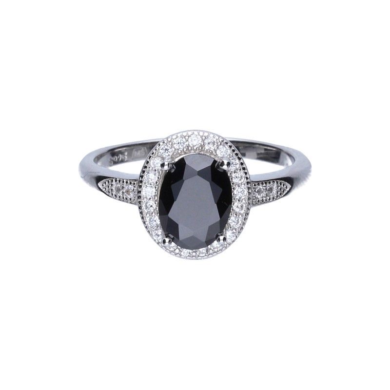 Marquise-Ring, 925er Silber, rhodiniert, weißer Zirkon sowie schwarzer Kristall, oval, Maße 11 mm x 9 mm.