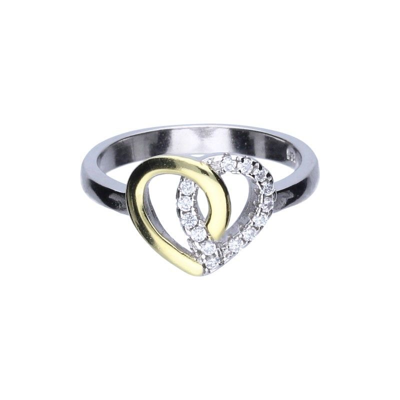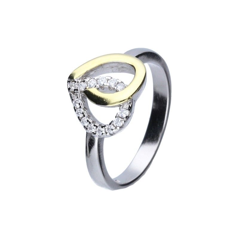 Durchbrochener Ring, Kombination aus 925er Silber, rhodiniert und 24 Karat vergoldet, weißer Zirkon, Herzgröße 10 mm x 11 mm.