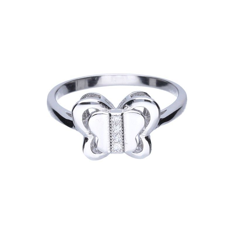 RING, 925er SILBER, RHODIUMBESCHICHTET, WEISSER ZIRKONIA, MIKROSETZUNG, SCHMETTERLING, ABMESSUNGEN 9 mm x 11 mm.
