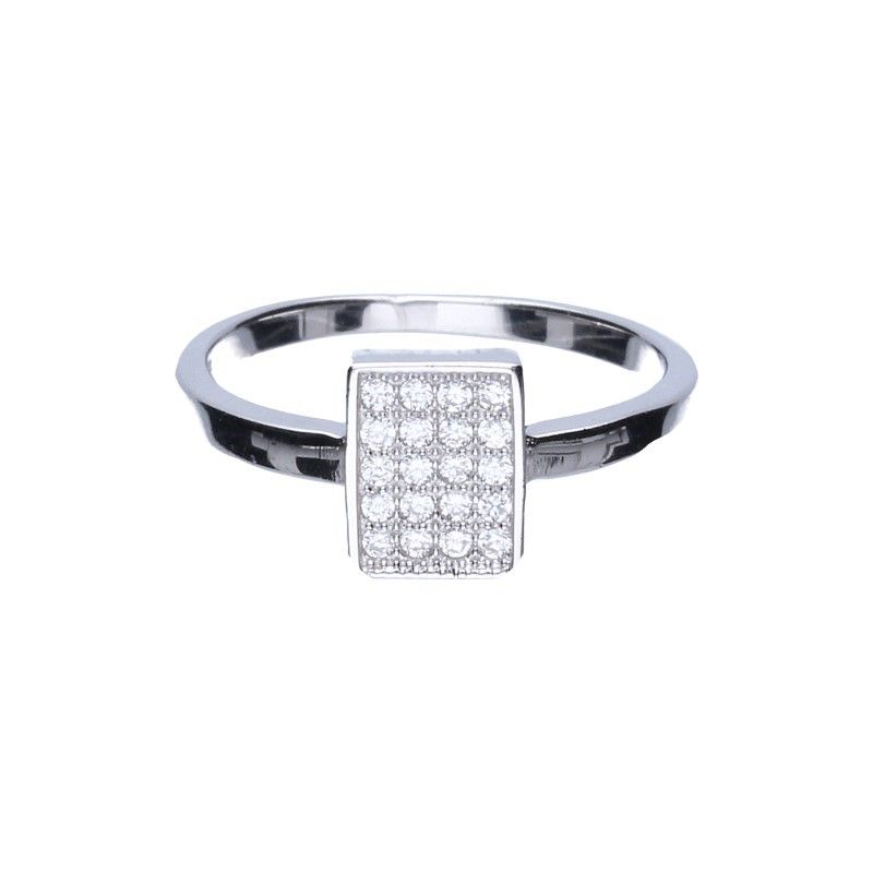 RING, 925er SILBER, RHODIUMBESCHICHTET, WEISSES ZIRKONIA, MIKROSETZUNG, RECHTECK, GRÖSSE 6 mm x 8 mm.