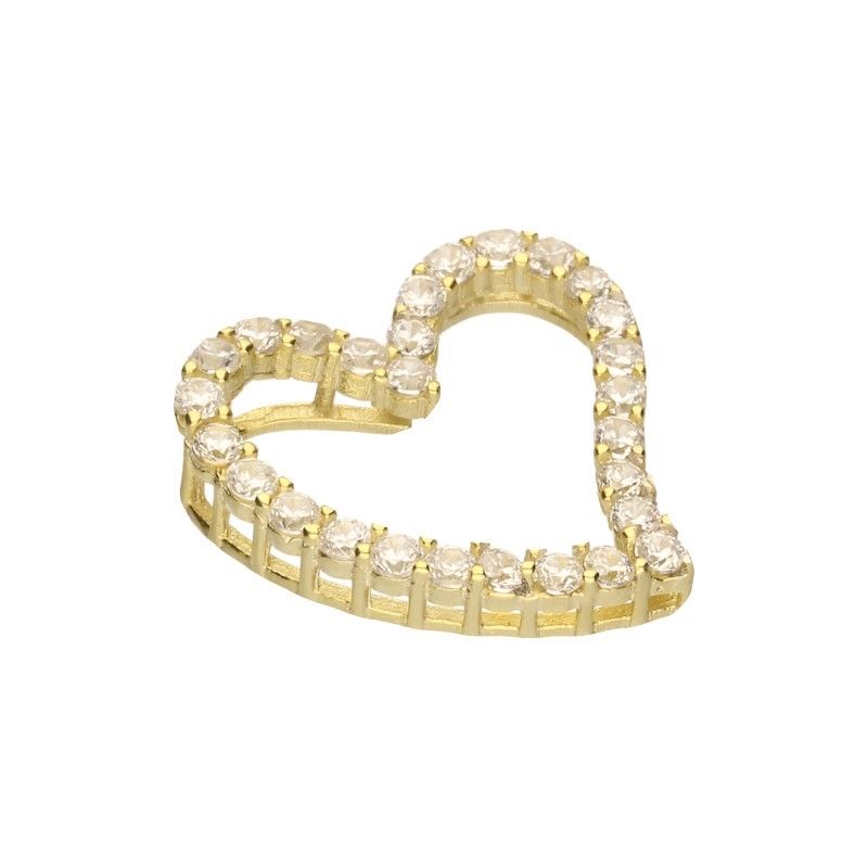 ANHÄNGER, 925 SILBER, VERGOLDET MIT 24 KARAT GOLD, HERZ, WEISSER ZIRKONIA, ABMESSUNGEN 20 mm x 19 mm.