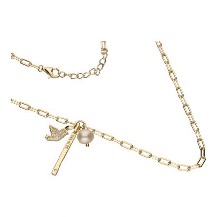 HALSKETTE, 925 SILBER, VERGOLDET, LÄNGE 42 cm + 3 cm VERLÄNGERUNG, PERLE, VOGEL, SILBERGEWICHT 4,9 G.