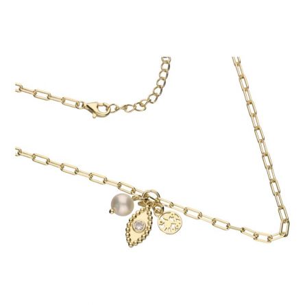 HALSKETTE, 925 SILBER, VERGOLDET, LÄNGE 42 cm + 3 cm VERLÄNGERUNG, PERLE, BAUM, AUGE, SILBERGEWICHT 4,9 G.