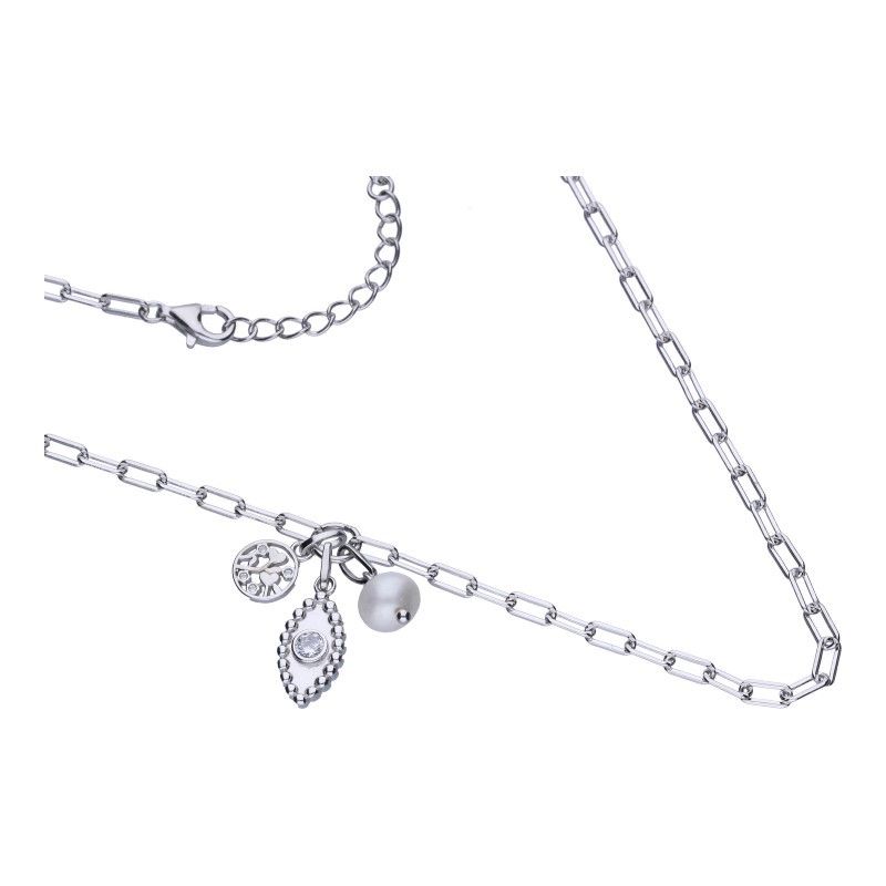 HALSKETTE, 925 SILBER, RHODINIERT, LÄNGE 42 cm + 3 cm VERLÄNGERUNG, PERLE, BAUM, AUGE, SILBERGEWICHT 4,9 G.