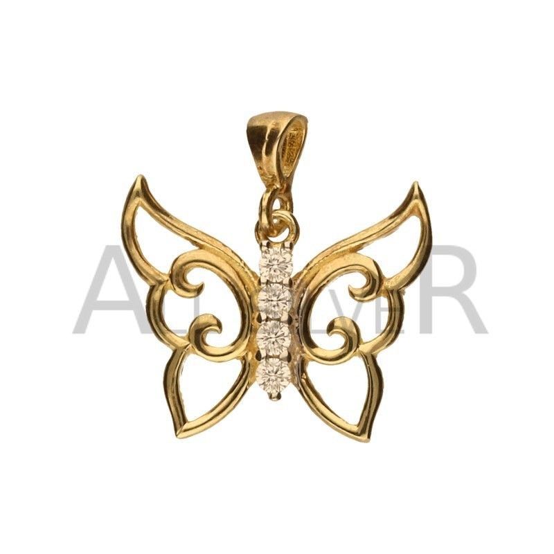 ANHÄNGER MIT DURCHBRUCH, 925 SILBER, VERGOLDET, ABMESSUNGEN OHNE BAND 1,6CMx1,9CM, WEISSER ZIRKONIA, SCHMETTERLING.