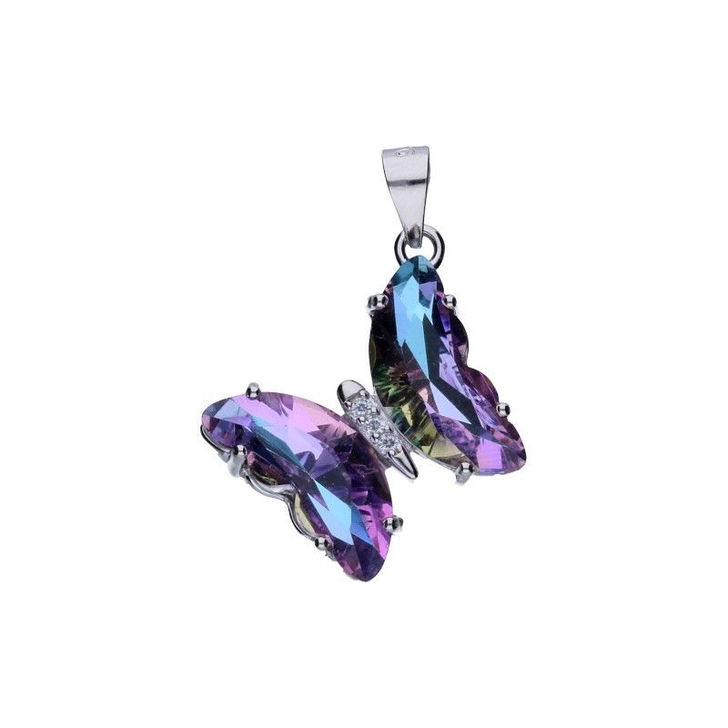 SCHMETTERLINGSANHÄNGER, 925 SILBER, RHODINIERT, WEISSES ZIRKONIA, SCHLITTENDE KRISTALLE IN DEN FLÜGELN, ANHÄNGERABMESSUNGEN 20 mm x 15 mm OHNE BAND.