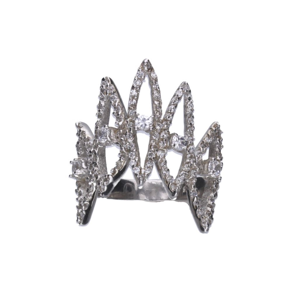 Durchbrochener Ring, 925er Silber, rhodiniert, weißer Zirkon, 25 mm an der breitesten Stelle, Krone.