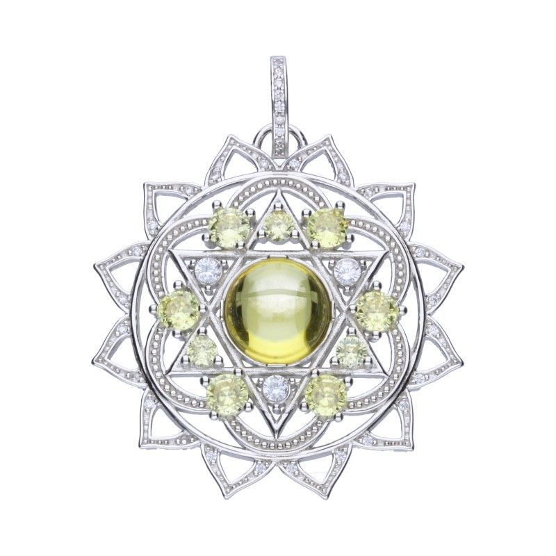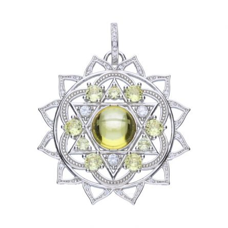 Durchbrochener Anhänger, 925er Silber, rhodiniert, buntes Zirkonoxid, Maße ohne Krawatte: 37 mm x 37 mm.