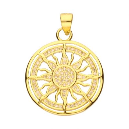 ANHÄNGER MIT DURCHBRUCH, RUND, 925 SILBER, VERGOLDET MIT 24 KARAT GOLD, WEISSEM ZIRKONIA, DURCHMESSER 22 mm.