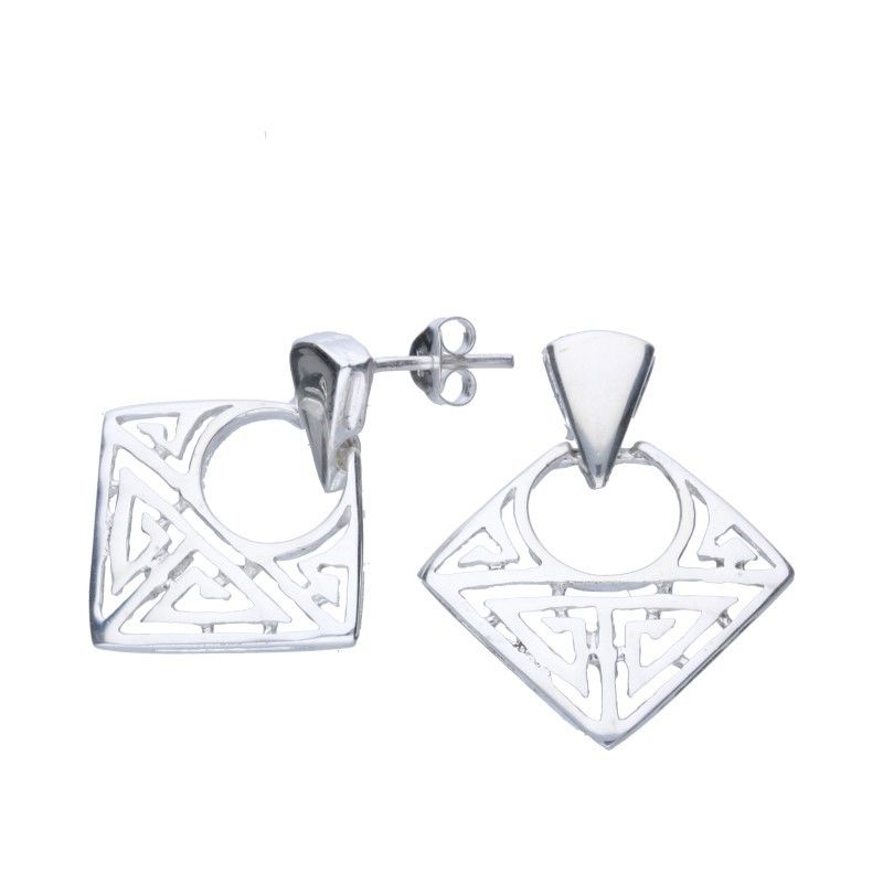 DURCHGEBLENDE OHRRINGE AN EINEM HÄNGESTANGE, 925 VERSILBERT, GEOMETRISCH, OHRRINGABMESSUNGEN 28 mm x 23 mm.