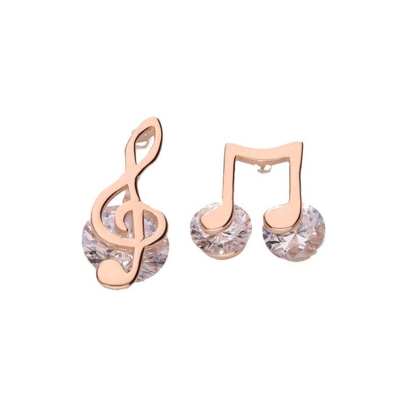 Ohrstecker, 925er Silber, rosa vergoldet, Note, Treeekep, weißer Zirkon, Note-Abmessungen: 10 mm x 10 mm, Treeekep-Abmessungen: 15 mm x 7 mm.
