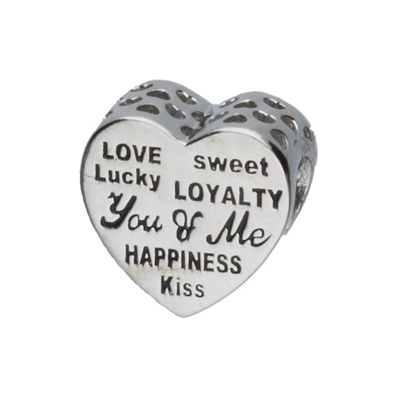 PERLENANHÄNGER PASST ZU MODULARARMBÄNDERN MIT EINEM DURCHMESSER VON 3 MM, 925 SILBER, RHODINIERT, HERZ MIT DEN INSTRUMENTEN, SÜßE LIEBE, KUSS, GLÜCK, DU & ICH, GLÜCK.
