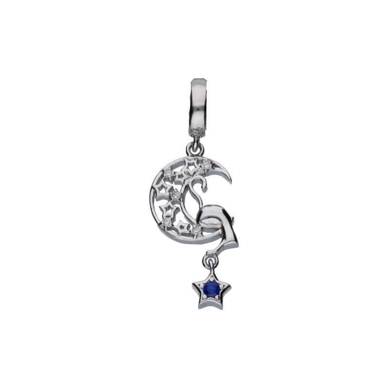 Der durchbrochene Perlenanhänger passt zu modularen Armbändern mit einem Durchmesser von 3 mm, 925er Silber, rhodiniert, Saphir-Zirkonia, Mond, Sterne.