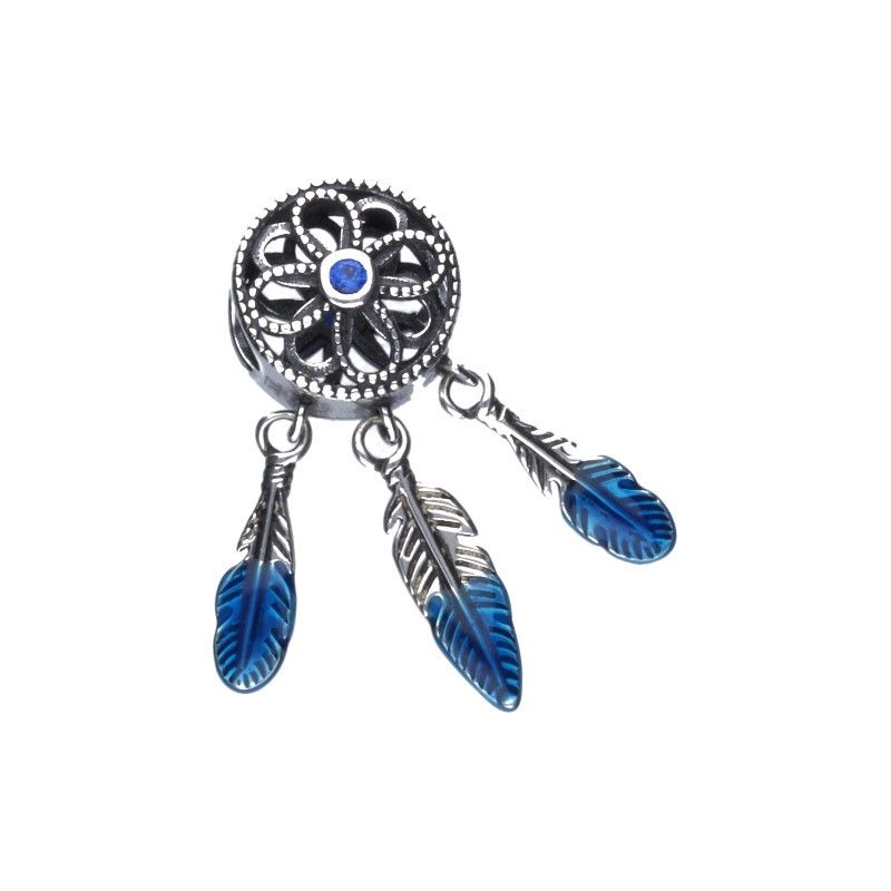 Durchbrochener Perlenanhänger für ein modulares Armband, Durchmesser 3 mm, 925er Silber, rhodiniert, Traumfänger.
